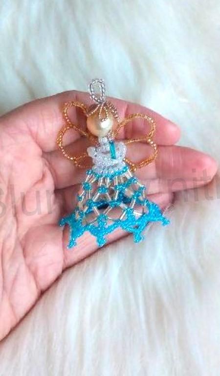 Krásná 3D stojicí dekorace, ozdoba anděl, andílek. Jedná se o ruční výrobu, podle staré tradice. Základ tvoří pevný drátek a kvalitní perličky, korálky, různé trubičky a jiné komponenty. Anděl dobře drží tvar, vhodný na vánoce, jako dekorace do bytu, dárek. Česká výroba.