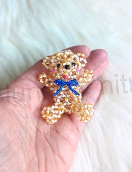 Krásná 3D stojicí dekorace, ozdoba medvídek, méďa. Jedná se o ruční výrobu, podle staré tradice. Základ tvoří pevný silikonový vlasec, korálky a jiné komponenty. Medvídek dobře drží tvar, vhodný na vánoce, jako dekorace do bytu, dárek. Česká výroba.