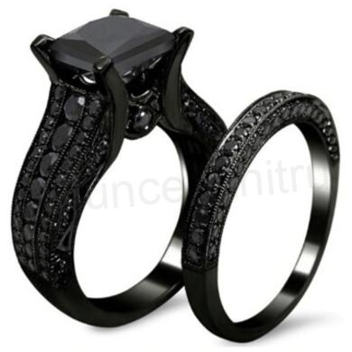Černé snubní prsteny se zirkony CZ velikost 57 (BP125)
