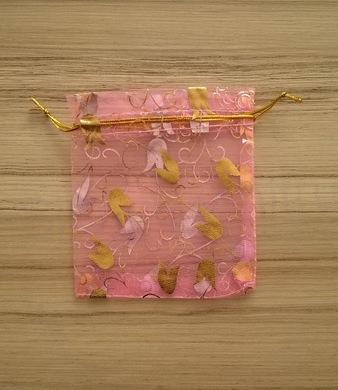 Dárkový sáček organza v růžové barvě s květy tulipánů, stačí zatáhnout za šňůrky a uzavřít. Ideální na balení drobných dárečku, můžete v něm darovat různou bižuterii, bonbóny a také vložit různé voňavé bylinky nebo jinou drobnou věc.
