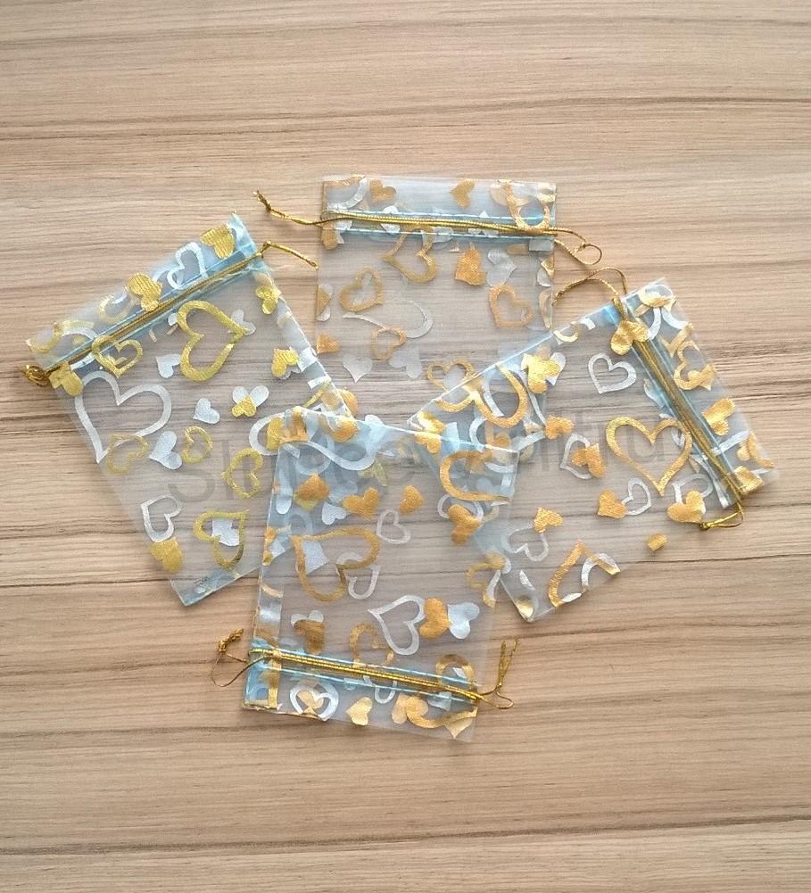 Dárkový sáček organza ze srdíčkami 10x12 cm (AE5)