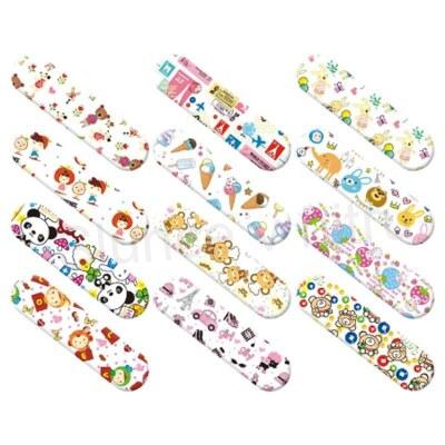 Dětská náplast první pomoci s potiskem různých kreslených kreseb, roztomilých a sladkých postaviček. Jednorázové použití, prodyšná, nelepivá, dobře drží vodotěsná. Používá se hlavně k ochraně malých ranek. Je umístěná savá vložka je pokryta speciální nepřilnavou vrstvou zabraňující přilepení náplasti k ráně a tím její traumatizaci při odstraňování náplasti. Zhruba 10 různých motivů. Vysoce kvalitní, nepůsobí alergii.