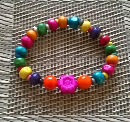 Veselý barevný dětský korálkový náramek s Ozdobou pro děti od cca 4 do 12 let. Je pružný zpevněný dvojitou gumičkou. Ruční výroba. Udělejte jim radost. Je zdravotně nezavadaný. Nevhodné pro děti mladší 3 let, hrozí spolknutí malých častí.