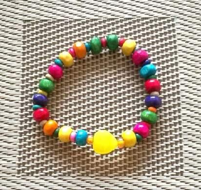 Veselý barevný dětský korálkový náramek s Ozdobou pro děti od cca 4 do 12 let. Je pružný zpevněný dvojitou gumičkou. Ruční výroba. Udělejte jim radost. Je zdravotně nezavadaný. Nevhodné pro děti mladší 3 let, hrozí spolknutí malých častí.