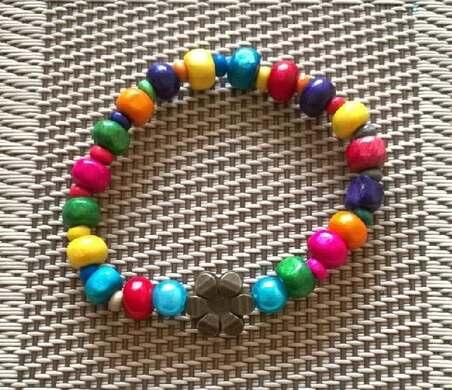 Veselý barevný dětský korálkový náramek s Ozdobou pro děti od cca 4 do 12 let. Je pružný zpevněný dvojitou gumičkou. Ruční výroba. Udělejte jim radost. Je zdravotně nezavadaný. Nevhodné pro děti mladší 3 let, hrozí spolknutí malých častí.