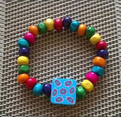 Veselý barevný dětský korálkový náramek s Ozdobou pro děti od cca 4 do 12 let. Je pružný zpevněný dvojitou gumičkou. Ruční výroba. Udělejte jim radost. Je zdravotně nezavadaný. Nevhodné pro děti mladší 3 let, hrozí spolknutí malých častí.