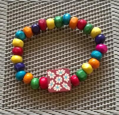 Veselý barevný dětský korálkový náramek s Ozdobou pro děti od cca 4 do 12 let. Je pružný zpevněný dvojitou gumičkou. Ruční výroba. Udělejte jim radost. Je zdravotně nezavadaný. Nevhodné pro děti mladší 3 let, hrozí spolknutí malých častí.