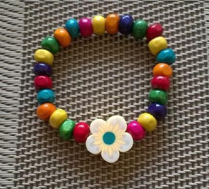 Veselý barevný dětský korálkový náramek s Ozdobou pro děti od cca 4 do 12 let. Je pružný zpevněný dvojitou gumičkou. Ruční výroba. Udělejte jim radost. Je zdravotně nezavadaný. Nevhodné pro děti mladší 3 let, hrozí spolknutí malých častí.
