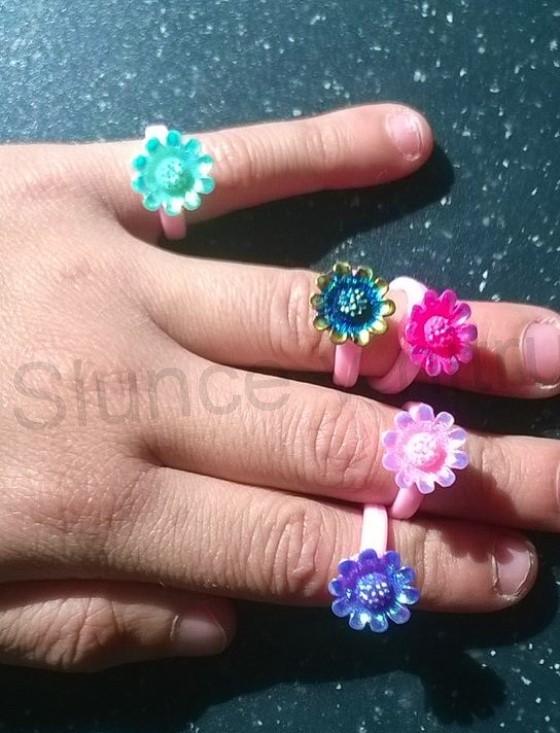 Krásný nastavitelný dívčí prstýnek do tvaru květinym kytičky, kytička. Vyroben z ekologického nezávadného materiálu, propracovaný do detailu.Prstynek lze trochu zvětšit.