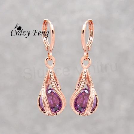 - Dlouhé pozlacené náušnice – zirkonová kapka, fialová (BB250)