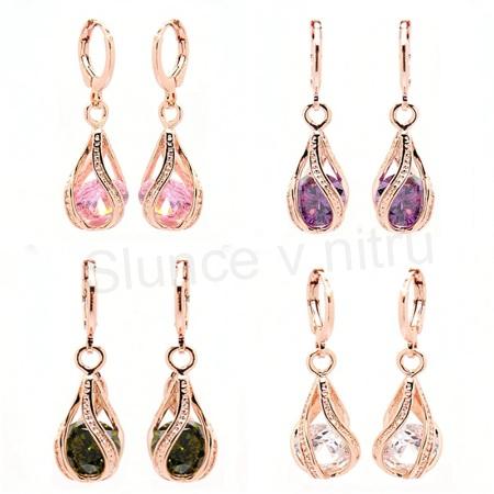 - Dlouhé pozlacené náušnice – zirkonová kapka, více barev (BB250)