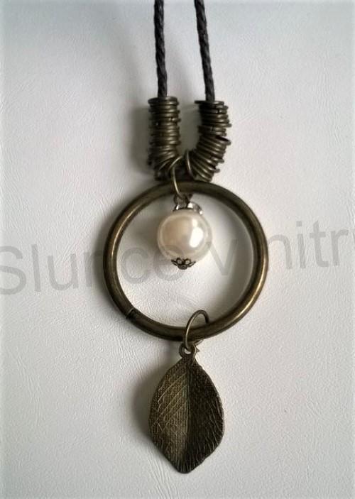 Tento dlouhý módní náhrdelník (BD128) je navržen tak, aby podtrhl ženskou eleganci a dodal každému outfitu jemný, stylový akcent. Zavěšen je na pevném voskovaném provázku, který zajišťuje pohodlné nošení a dlouhou životnost. Dominantou šperku je kovový kruh o velikosti 4,3 × 4,3 cm, z něhož visí dekorativní lístek a bílá perlička – kvalitní imitace, která působí jemně a nadčasově.