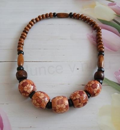 - Dřevěný korálkový náhrdelník z přírodního dřeva (BD111)