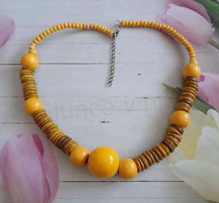 - Dřevěný žlutý retro korálkový náhrdelník na zapínání (BD387)