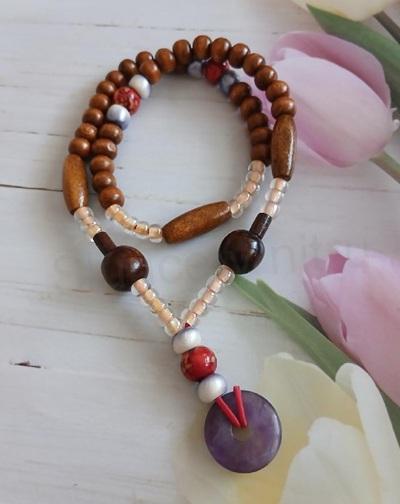 - Dřevěný náhrdelník s ametystem (BD122)