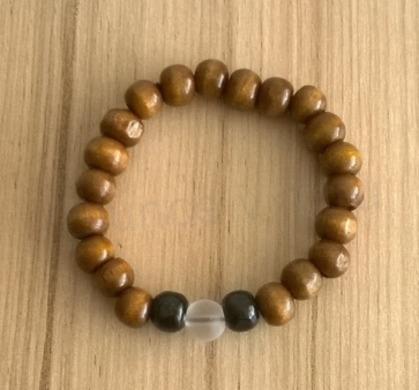 Dřevěný korálkový náramek z přírodního dřeva a křišťálu, krásné spojení s přirodou a přirozeností. Barevnost dřevěných korálků se hodí ke všem barvám oblečení. Náramek je určen jak pro pány, tak pro dámy. Harmonicky modní náramek je v lehké barevné kombinaci různých korálků. Náramek je navlečen na pružné pevné pružence ( gumičce), která dobře drží a nehrozí její poškození. Výhodou náramku je, že korálky nikde netlačí, ani nevíte, že ho máte. Zacházejte s ním jako se šperkem, nedoporučuje se dlouhodobé namáčení. Náramek je originál, jedná se o ruční výrobu.