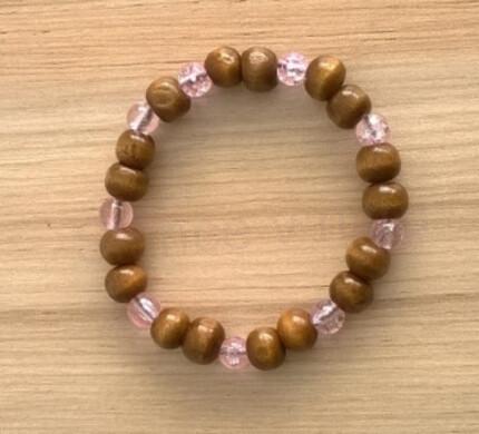 Dřevěný korálkový náramek z přírodního dřeva a skleněnými korálky ( jablonecké korálky - Jablonec nad Nisou), krásné spojení s přirodou a přirozeností. Barevnost dřevěných korálků se hodí ke všem barvám oblečení. Náramek je určen jak pro pány, tak pro dámy. Harmonicky modní náramek je v lehké barevné kombinaci různých korálků. Náramek je navlečen na pružné pevné pružence ( gumičce), která dobře drží a nehrozí její poškození. Výhodou náramku je, že korálky nikde netlačí, ani nevíte, že ho máte. Zacházejte s ním jako se šperkem, nedoporučuje se dlouhodobé namáčení. Náramek je originál, jedná se o ruční výrobu.