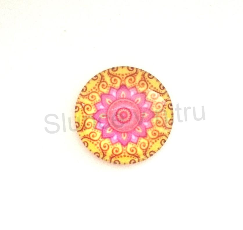 Skleněný kabošon z čirého skla s vlepeným grafickým motivem, má rovnou hladkou plošku k nalepení, vhodné na přilepení na lůžko, textil nebo jako ozdoba.