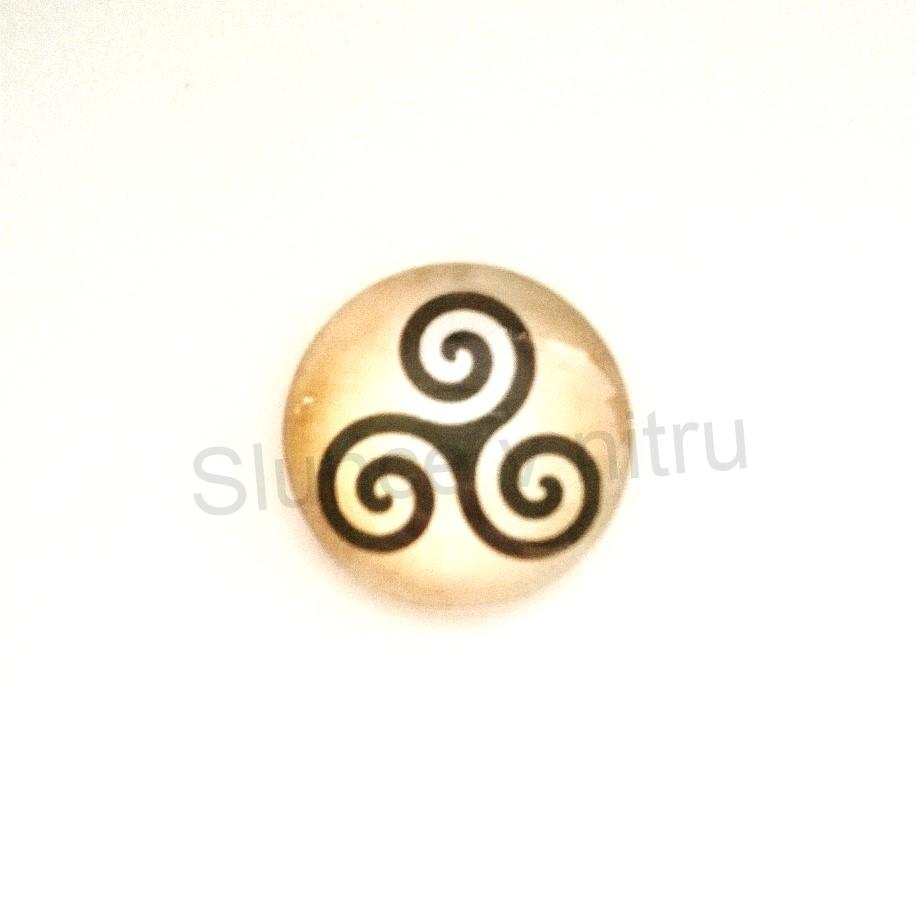 Skleněný kabošon z čirého skla s vlepeným grafickým motivem, má rovnou hladkou plošku k nalepení, vhodné na přilepení na lůžko, textil nebo jako ozdoba.