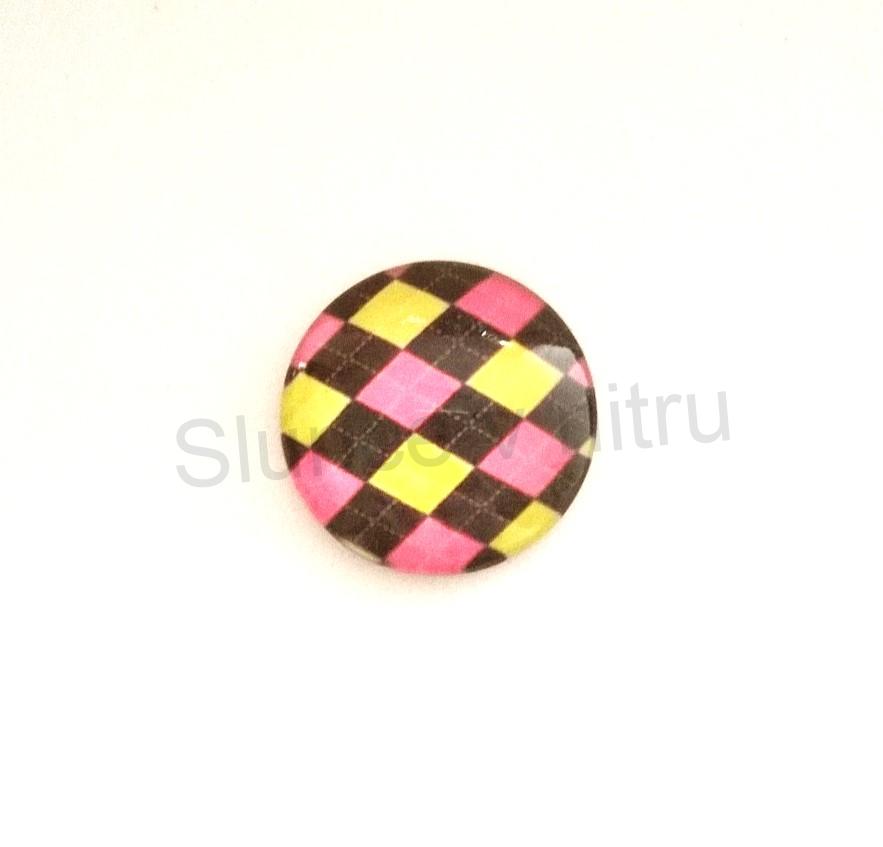 Skleněný kabošon z čirého skla s vlepeným grafickým motivem, má rovnou hladkou plošku k nalepení, vhodné na přilepení na lůžko, textil nebo jako ozdoba