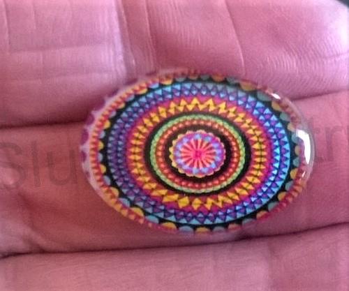 Skleněný kabošon z čirého skla s vlepeným grafickým motivem, má rovnou hladkou plošku k nalepení, vhodné na přilepení na lůžko, textil nebo jako ozdoba.
