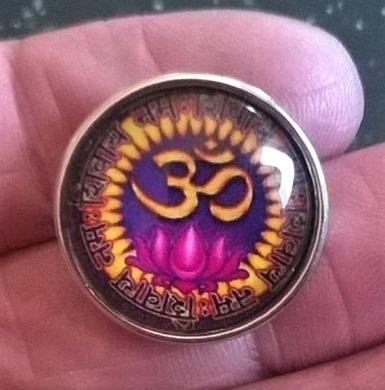 Skleněný čudlíkový, knoflíkový, zacvakajicí kabošon z kovu a čirého skla čakry, čakra, mandala. Cvakavácí čudlíkové kabošony se dají kdykoli vyměnit za jiný motiv. Hodí se na jakykoliv šperky k tomu určený. Snadno se dájí vyměnit za jiný motiv.
