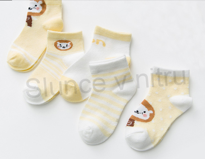 Dětské ponožky pro děti od 0 do 12 měsíců. Mají veselý design zvířátek, který je atraktivní pro děti. Horní lem je jemný, nožku pěkně svírá, ale nestahuje. Ponožky jsou nabalené v setu po 5párů v plastovým obalu, který můžete opakovaně použít, snadno jde otevřít a zavřít.