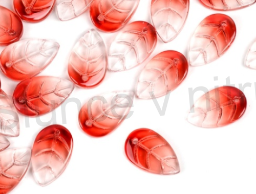 Korálek skleněný lístek červený barevný - 11 x 18 mm (AC6)
