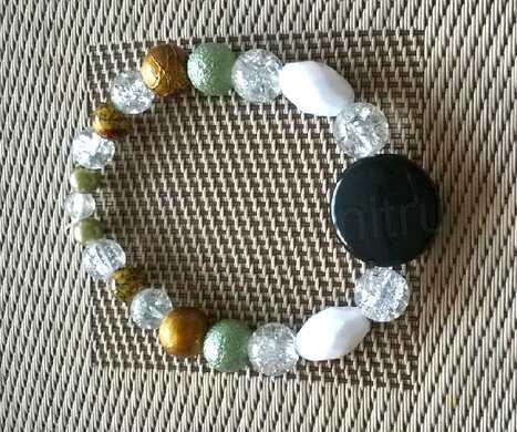 Náramek je unisex, 100% kvalita. Přizpůsobí se každému zápěstí. Drží kruhový tvar, je volný a není na pevné zapínání. Má dvojitou pružnou gumičku. Originální tvorba, nikde není žádný stejný.