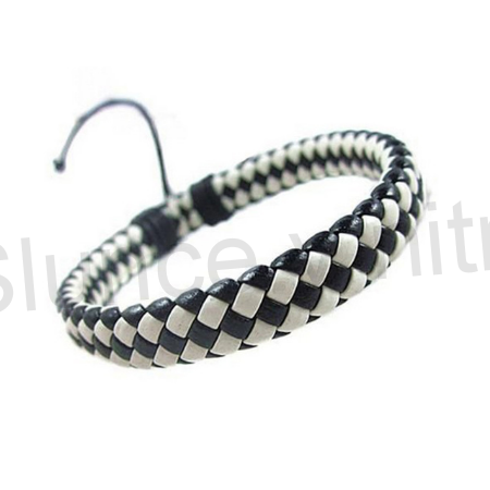 - Kožené náramky nastavitelné bílo-černý (BC22)