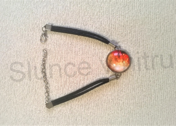 - Kožený náramek s kabošonem - vesmír / platina - 4 (BC463)