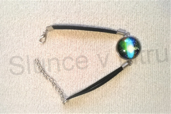 - Kožený náramek s kabošonem - vesmír / platina - 5 (BC463)