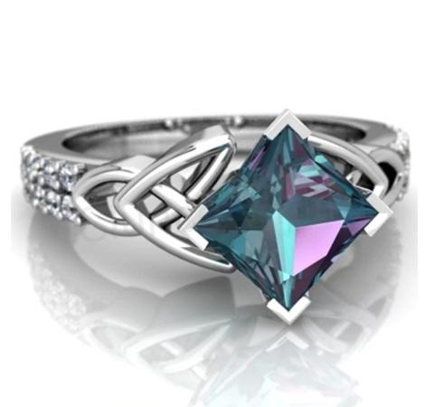 Po obou stranách je zdoben menšími čirými zirkony CZ, které dodávají jemný třpyt. Dominantou je velký barevný zirkon uprostřed, který mění odstíny podle dopadu světla a vytváří opravdu výjimečný efekt.