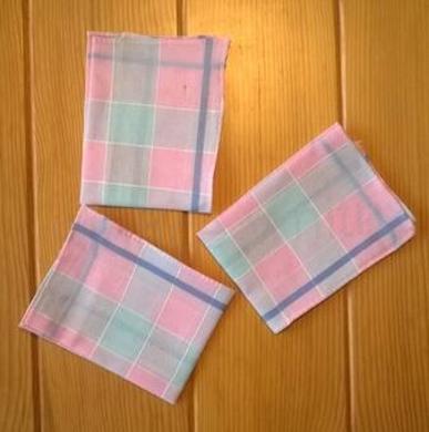 Klasický universální kapesník. Perte na 60 stupňů. Kapesníky mají buničinu, vypadají nepodajné a tvrdé, po omytí zjemní. Drobné odchylky na švech okrajů, na funkčnosti to nic nemění. Kapesník můtete používat podle vaší potřeby.