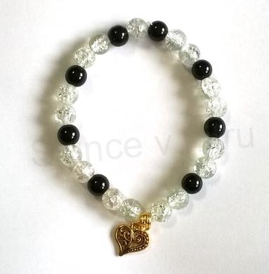 Minerální Náramek Onyx, Křišťál s přívěskem Srdíčka (BC49)
