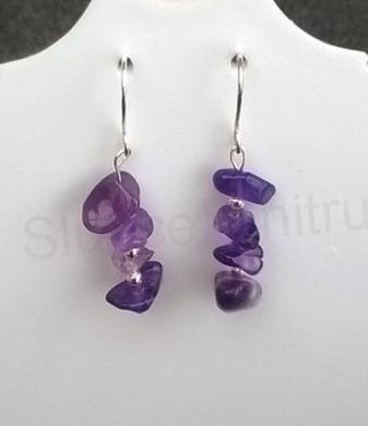 Nádherné Ametystové náušnice. Náušnice tvoří ametystové minerální zlomky vysoké kvality. Také jsou tvořeny z kvalitních komponentů, hlavně háčku, které jsou zakončeny silikonovou puzetkou. Silikonové puzetky zabraňujé ztrátě náušnic. Prosím berte na vědomí, foto je jen ilustrační, každý pár náušnic je originál. Každý kámen je jiný.