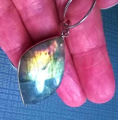 Originální náhrdelník s hadím řetízkem a pravým kamenem labradoritu. Na světle krásně září. Překrásný dárek.