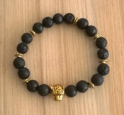 Lávový náramek s ozdobou divokého zvířete, kočka, tygr a kovovýma ozdobama. Náramek je na dvojité gumičce, dobře drží a snadno se přizpůsobí. Ostatní kovové komponenty jsou z velmi kvalitního galvanizováného kovu. Náramek je moderní, hodí se ke všem modním doplňkům.