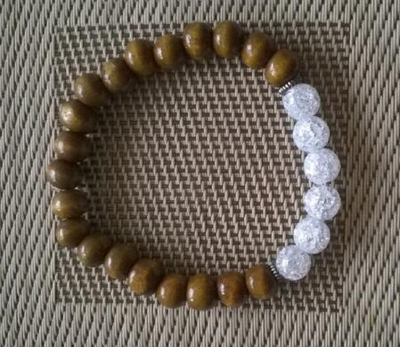 Minerální náramek s křišťálem a santalovým dřevem a kovovýma ozdobama. Náramek je na gumičce, dobře drží a přizpůsobí se každé ruce. Kuličky velikost cca 8 mm. Je určen pro dámy, tak pro pány.