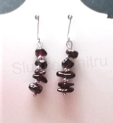 Náušnice tvoří granátové minerální zlomky. Také jsou tvořeny z klasických afroháčků, které jsou zakončeny silikonovou puzetkou. Silikonové puzetky zabraňujé ztrátě náušnic. Každý pár náušnic je originál. Každý kámen je jiný.