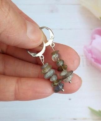 Nádherné labradoritové náušnice z chirurgické oceli. Náušnice tvoří přírodní minerální zlomky, vysoké kvality. Také jsou tvořeny z chirurgických komponentů, v platinové barvě, hlavně háčků, které jsou zakončeny na zacvaknutí v podobě kroužků.