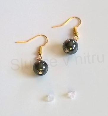 Nádherné pozlacené Hematitové náušnice z chirurgické oceli. Náušnice tvoří Hematitové minerální kuličky, vysoké kvality. Také jsou tvořeny z chirurgických komponentů, ve zlaté barvě, hlavně háčků, které jsou zakončeny silikonovou puzetkou. Silikonové puzetky zabraňujé ztrátě náušnic. Prosím berte na vědomí, foto je jen ilustrační, každý pár náušnic je originál. Každý kámen je jiný.