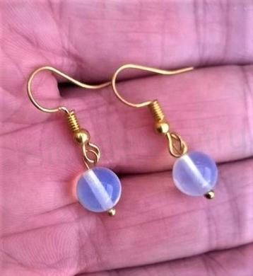 Nádherné pozlacené Opalitové náušnice z chirurgické oceli. Náušnice tvoří Opalitové minerální kuličky, vysoké kvality. Také jsou tvořeny z chirurgických komponentů, ve zlaté barvě, hlavně háčků, které jsou zakončeny silikonovou puzetkou. Silikonové puzetky zabraňujé ztrátě náušnic. Prosím berte na vědomí, foto je jen ilustrační, každý pár náušnic je originál. Každý kámen je jiný.