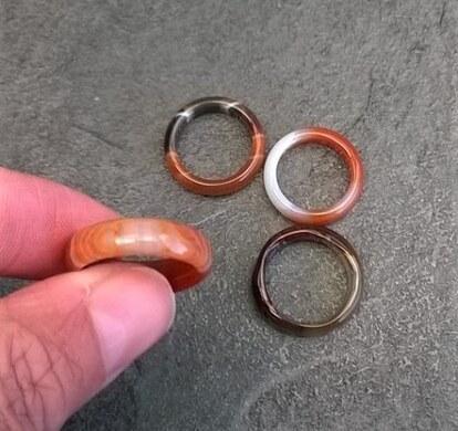 Netradiční minerální prstýnek Achát. Prosím berte na vědomí, že je každý prsten jiný, proto je každý originál, výběr je náhodný. Prsten jde nosit na prstě, nebo ho zavěsit na šňůrku, či řetízek. Každý prsten je jiný, můžou být i barevné varianty, tím je prsten unikátní. Barvy a vzory se mohou lišit.