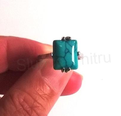 Krásný postříbřený romantický prsten pro ženy, dívky s minerálním kamenem syntetický tyrkys. Ručně zpracován, dokonalá jemná práce. Prsten je v hladkém provedení uprostřed prstenu je vsazen minerální kámen, zajištěn tak aby nemohl vypadnout, jemné zdobení, prsten je z pokovaného kovu. Modní doplněk k ostatním šperkům, krásně ladí. Funkce: zdobení, styl: Čechy