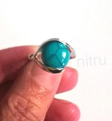 Krásný postříbřený romantický prsten pro ženy, dívky s minerálním kamenem syntetický tyrkys. Ručně zpracován, dokonalá jemná práce. Prsten je v hladkém provedení uprostřed prstenu je vsazen minerální kámen, zajištěn tak aby nemohl vypadnout, jemné zdobení, prsten je z pokovaného kovu. Modní doplněk k ostatním šperkům, krásně ladí. Funkce: zdobení, styl: Čechy