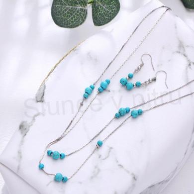 Zajimavá mineralní tyrkenitová souprava. Souprava se skladá z dvojitého řetízkovýho náhrdelníku a visací náušnice s minerálem tyrkenit. Jsou skvělým dárkem pro každou ženu. Náušnice jsou drobné, vhodné jak pro ženy, tak pro dívky, dobře sedí, přitom nikde netlačí, nejsou těžké. Vhodné na jakoukoliv společnost, či každodenní nošení. Řetízek ma zapinaní na karabinku plus prodlužovací řetízek.