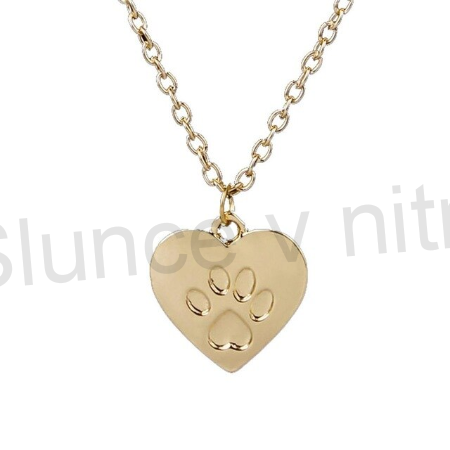 Zlatý řetízek s přívěskem srdce s obtiskem tlapky. Velmi originální šperk, také pro milovníky zvířátek.