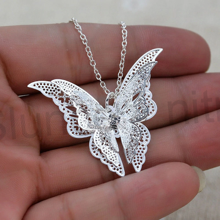 Nádherný postříbřený přívěšek s řetízkem s motyvem motýla, motýlka ve stříbrné barvě. Přívěšek motýlek je dokonale zpracován do všech detailů. Je nádherný jemný, lehoučký, vhodné na každodenní nošení, či do společnosti, vhodný ke všem modním doplňkům. Řetízek má zapinání na karabinku.