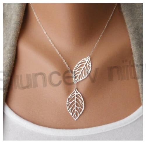 Jemný řetízek s dvěma velkými stříbrnými lístky připomínající lístky, lístek růže, spojený jednoduchým řetízkem. Buďte tou květinou uprostřed, velmi vhodný dárek, nebo skvělý elegantní modní doplněk.
